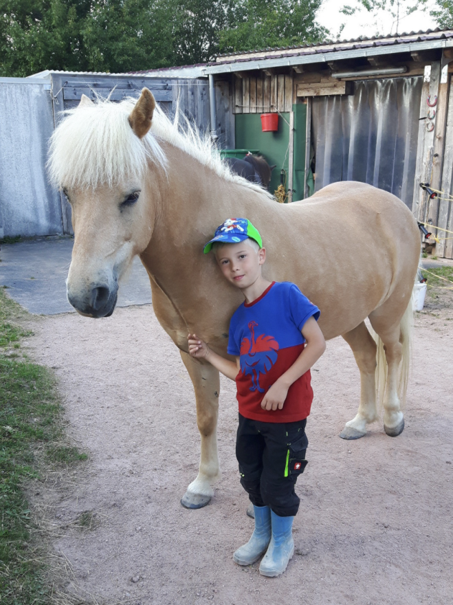 Geboren wurde er vor Sieben Jahren und feierte mit uns am 12.11.2020 seinen ersten Geburtstag auf unserem Hof. Nun ist er acht Jahre alt und hat sich bereit nach einer Woche schon super in unsere Herde integriert! Er ist ein sehr angenehmes und ruhiges Pferd. Dank seinem – nicht sehr dominanten Charakter, fand er bei uns schnell den Anschluss und Freundete sich mit unseren Pferden an.
